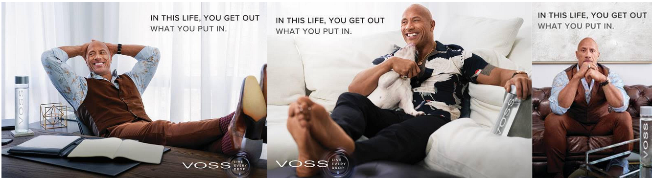 So Johnson deal means domestic franchise no longer is languishing in shadow of Asian focus. For brand that’s tended to tie itself to sophisticated, high-end occasions like gourmet meals and wine tastings, DJ’s entry is game changer. His Fast & Furious franchise spans 8 films dating back to 2001 and just is releasing first spinoff, Hobbs & Shaw, with several more films in works extending into 2022, per movie sites. To Boorstin, the connection to DJ, as she calls him, holds potential to move Voss beyond emphasis on its quality and Norwegian source, making it a bit less elitist and more relevant to active doers among consumers, given DJ’s widely varying activities beyond acting that will be highlighted in creative breaking Mon under rubric “Live Every Drop.” Media mix will include online videos offering behind-the-scenes glimpse of Johnson’s lifestyle as well as outdoor ads. The digital component, about 70% of mix, will target Voss’ aesthetically and culturally minded consumers, age 18-34 and skewing a bit female, as well as next-older cohort. Voss users who’re career-focused and travel a lot should be intrigued by those glimpses, shot in tones that range from relaxed to serious, Ariel believes. “He’s his own media platform,” she said. “He has a powerful voice.” She wouldn’t disclose budget but said it’s “more than we ever spent before.”