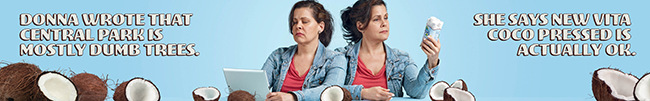 Tough nuts to crack? Coconuts, for sure. But also rater-haters, who begrudge even a single star to the targets of their enmity. Believing its fast-growing Vita Coco Pressed extension can finally overcome resistance to coconut water still harbored by sizable share of consumers, NY-based All Market has enlisted some of the most vituperative raters it could find for new campaign breaking today that posits Pressed as “Impossible to hate.” New 30-second videos heading to streaming-TV and digital media sites like Hulu, YouTube, Amazon and Spotify Sessions along with paid social media bring rave reviews like “It’s OK,” from woman who rated Grand Canyon a “big dumb hole,” and “It’s doable,” from burly guy who warned local launderette that “I’ll be contacting my attorney.” Also in mix are audio spots on iHeartMedia and Spotify, and out-of-home ads all over NYC, LA, Chicago, SF, Dallas, Denver and Boston thru summer. “Surprise! You like coconut water now,” informs one. Another depicts Donna, who posted that Central Park “is mostly dumb trees . . . She says that Vita Coco Pressed is actually OK.” There’s a money-back guarantee, too.