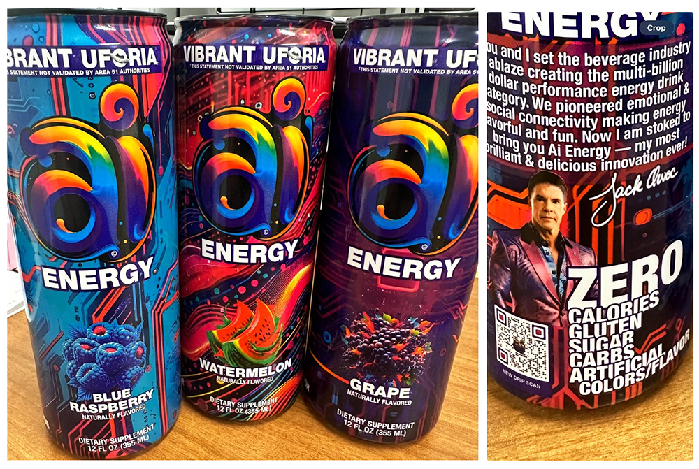 In recent days it's been creating a ripple of shock as well as anticipation: beleaguered Bang Energy creator Jack Owoc, who lost his co to Monster Beverage after series of adverse lawsuits, seems to be looking to re-enter category. The vehicle is new canned energy line called AI, as in "artificial intelligence," that is packed in vibrantly colored 12-oz cans and positioned as "Vibrant Uforia," per prototypes we've viewed. In a nod to his past run-ins with regulators and rivals, the cans also carry tongue-in-cheek disclaimer that "this statement not validated by Area 51 authorities." Owoc, who's built visible social media identity over the years touting Bang and attacking foes, incorporates his own image and signature on back panel, heralding his role in creating the performance energy segment and declaring AI to be "my most brilliant and delicious innovation ever!" The line seems headed to market in Blue Raspberry, Watermelon and Grape flavors and, as one source we encountered at show told us, seems to be receiving surprising degree of interest from distributors, given their past history with unpredictable entrepreneur. We haven't been in touch with Jack yet on this one but hope to bring you more soon.